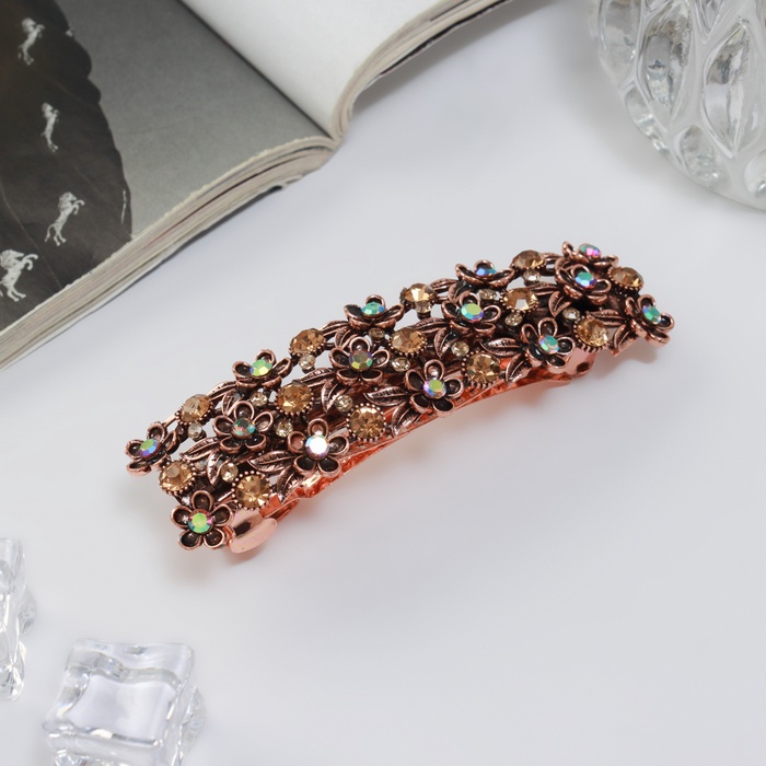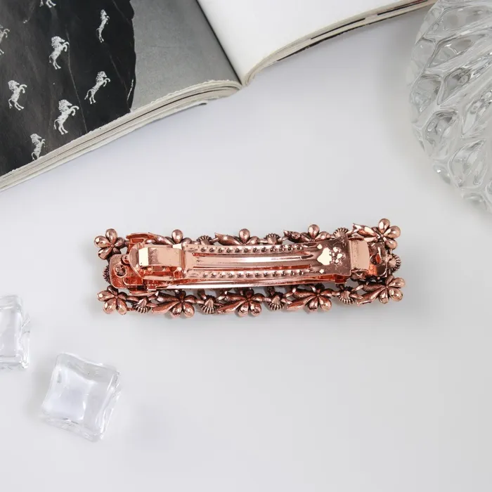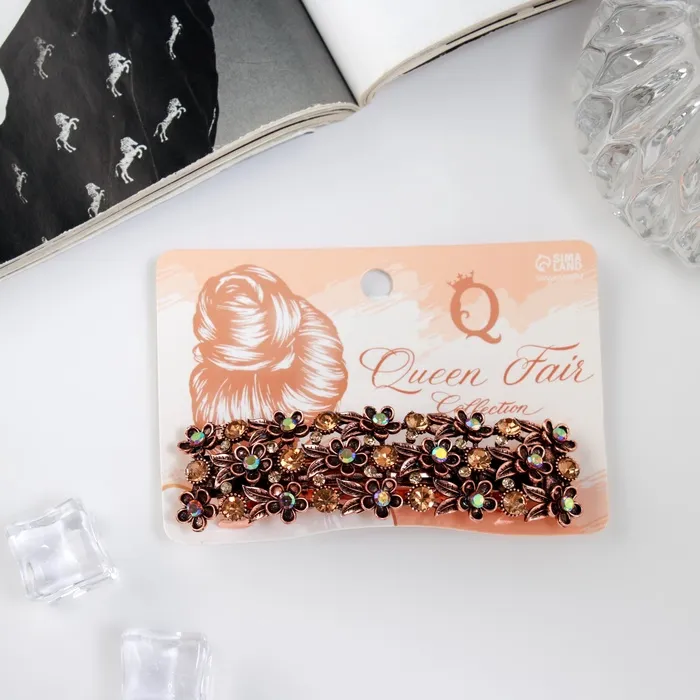 - Элегантный дизайн: заколка выполнена из сочетания металла и стекла, что придаёт ей утончённость и изысканность. Этот аксессуар гармонично впишется как в повседневные, так и в вечерние образы.
