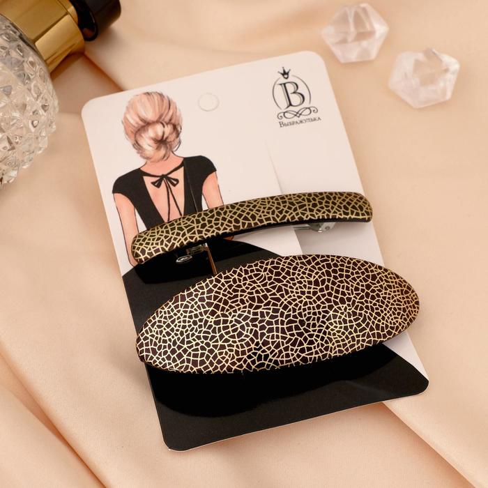 Элегантные автоматические заколки для волос «Лава» - это идеальный аксессуар для современной женщины. Комплект включает две заколки в изысканных золотистых и коричневых оттенках, длиной 9 см и 7,5 см соответственно. Они уверенно фиксируют волосы, добавляя утончённости и стиля вашему внешнему виду.