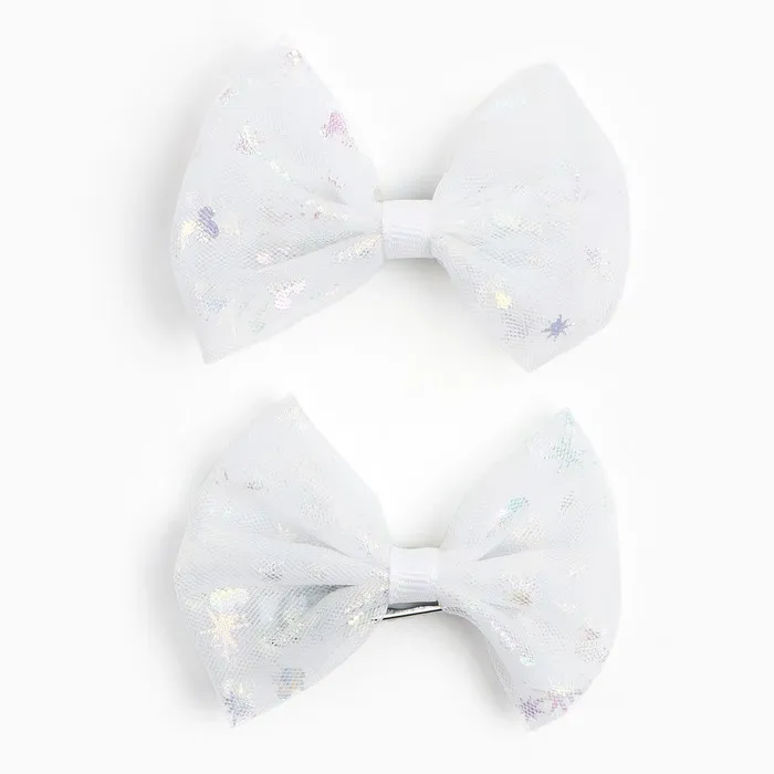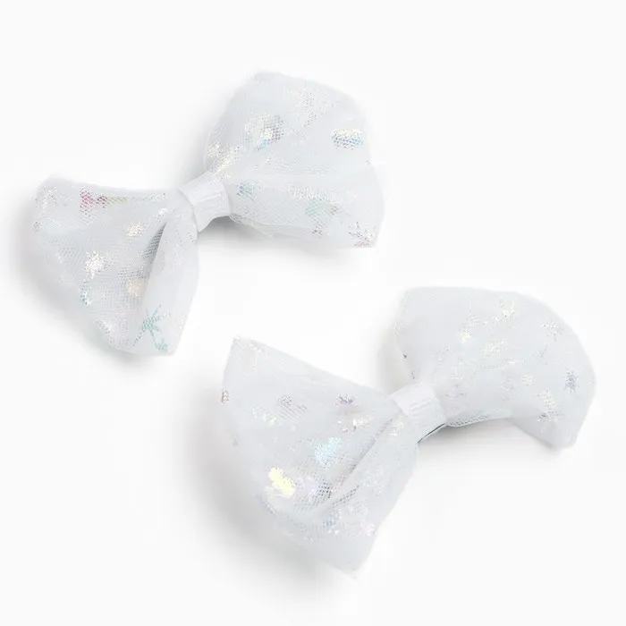 Заколка для волос белый бант, набор, 2 шт., 7.5 см, Коты аристократы