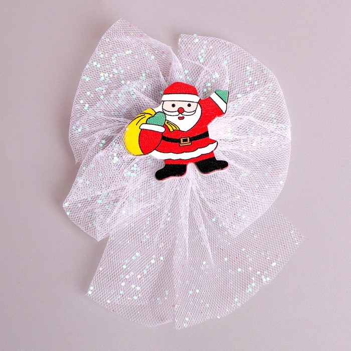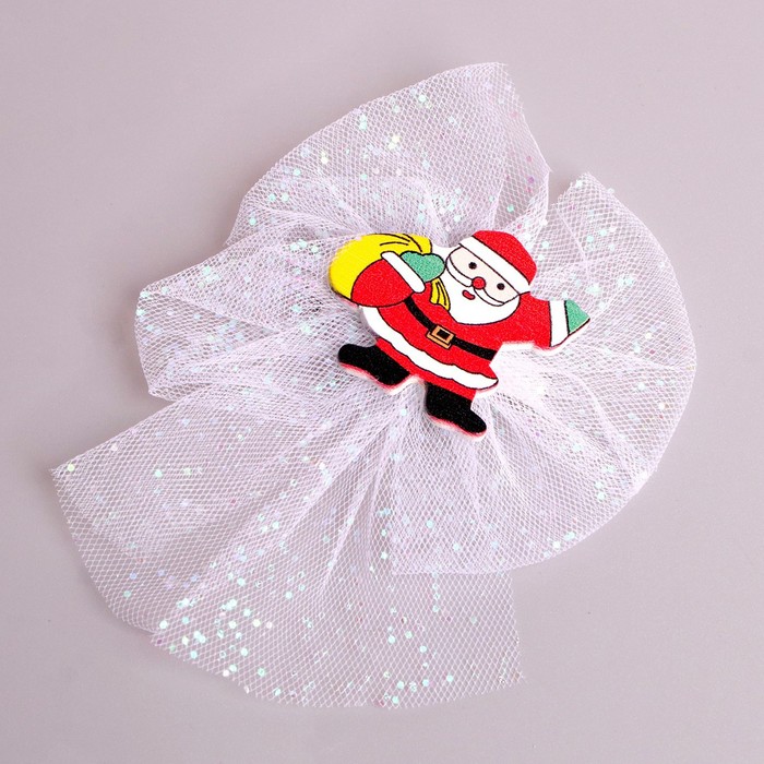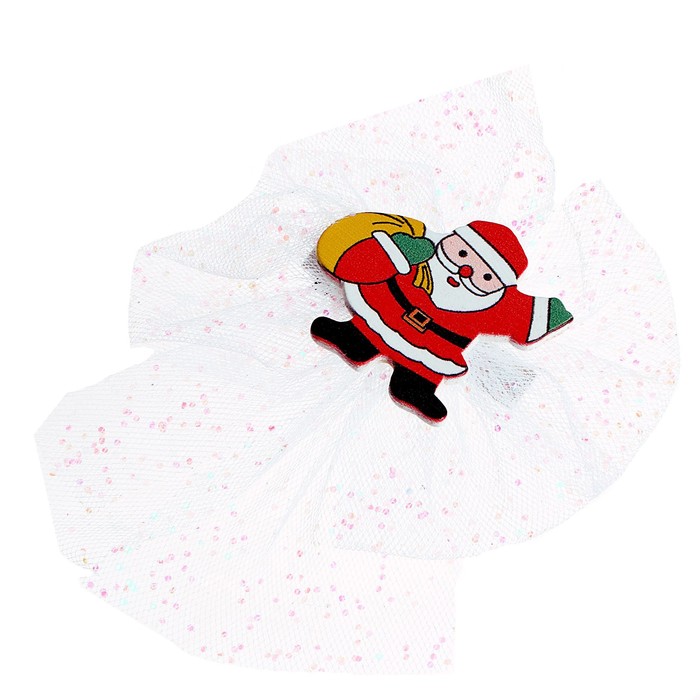 Карнавальный зажим «Дед Мороз» — это яркий и праздничный аксессуар, который идеально подойдет для создания новогоднего образа. Зажим выполнен в виде бантика с Дедом Морозом.