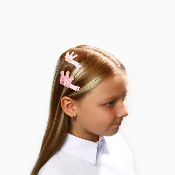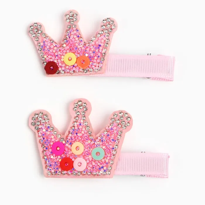 Заколка для волос «Корона» со стразами, 2 шт. 5.5 см, Принцессы — Характеристики