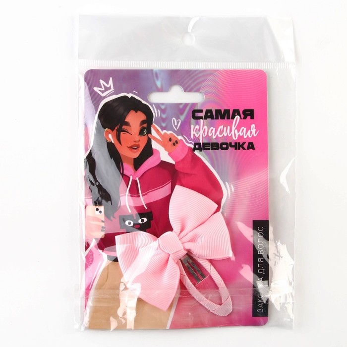 Заколка для волос с бантом «Самая красивая девочка», 1 х 2,5 х 6,5 см