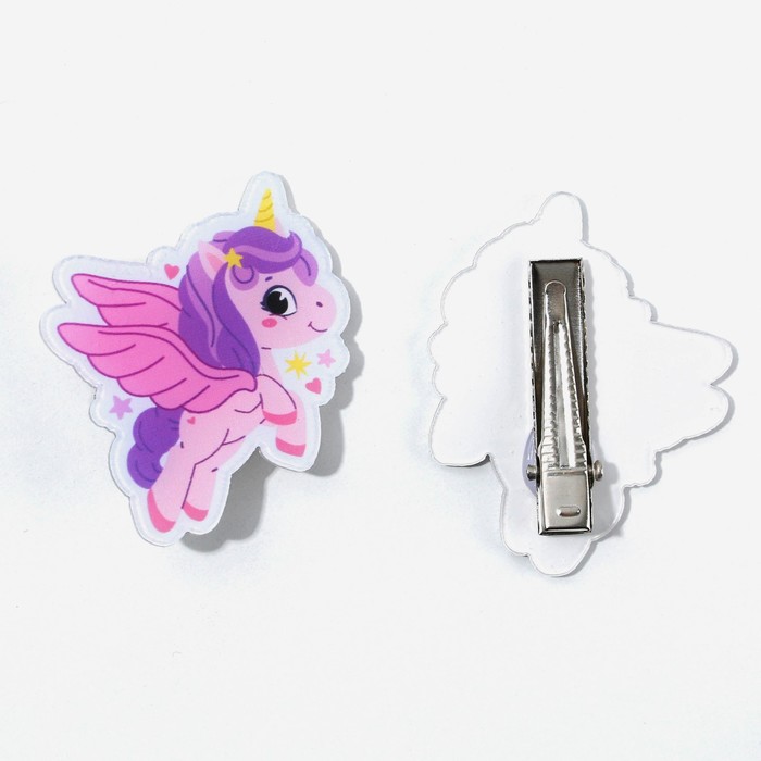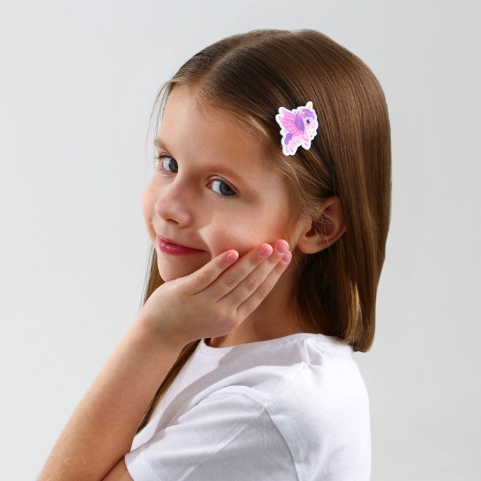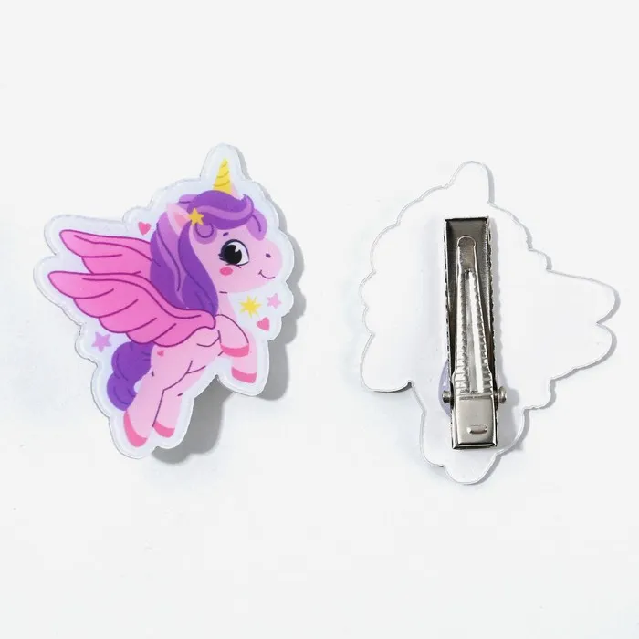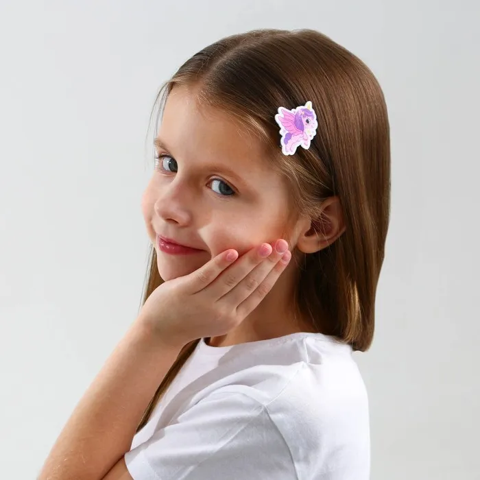 Модные красивые заколки - украшения клик-клак для маленьких принцесс с удобным механизмом автомат. Заколки станут отличным подарком на любой праздник. Декоротивные, безопасные фигурки единорожек понравятся малышке, девочке. Модные и яркие заколки с единорогом с легкостью украсят прическу, зафиксируют прядь волос или челку. От таких детских заколок в восторге и взрослые, и дети. Крокодильчики легко крепить на голову, подойдут для всех видов волос. Порадуйте себя и ребенка нашими детскими заколками. ВНИМАНИЕ! С заколки необходимо снять защитную пленку перед использованием!