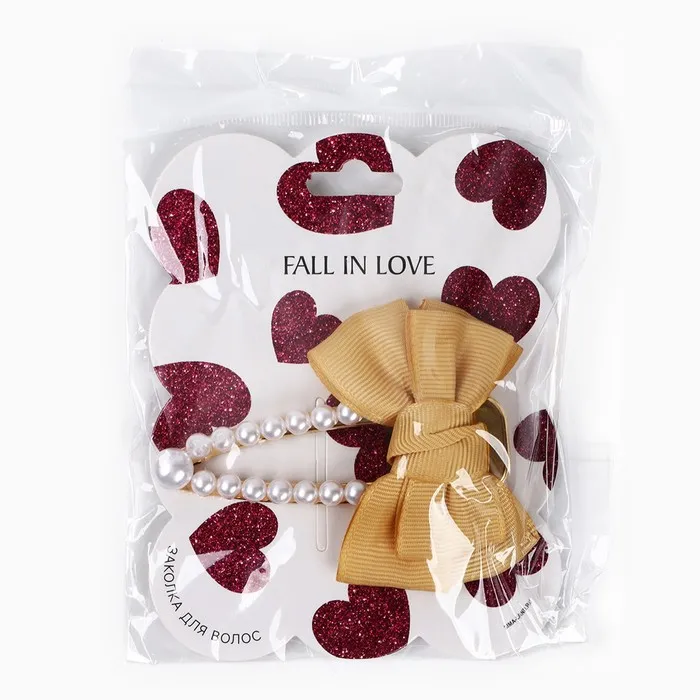Заколка для волос жемчуг с бантиком Fall in love, 8×8 см