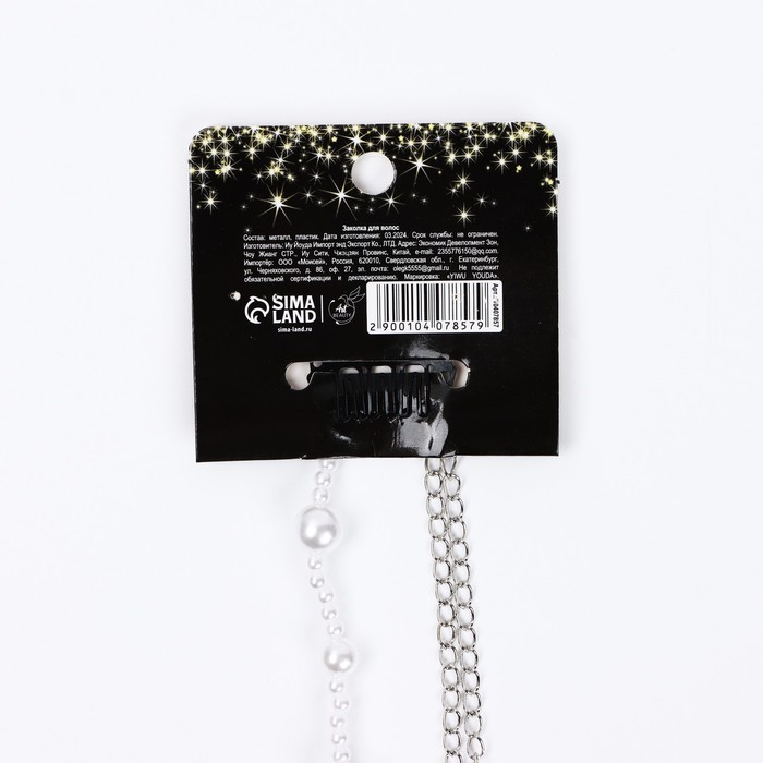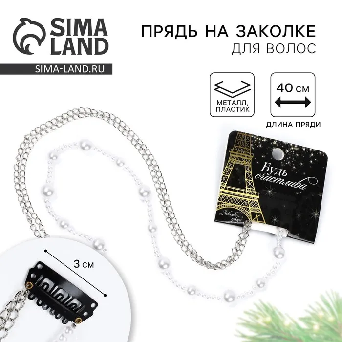 Заколка прядь с жемчугом новогодняя «Будь счастлива», 7 х 6,4 см — Характеристики