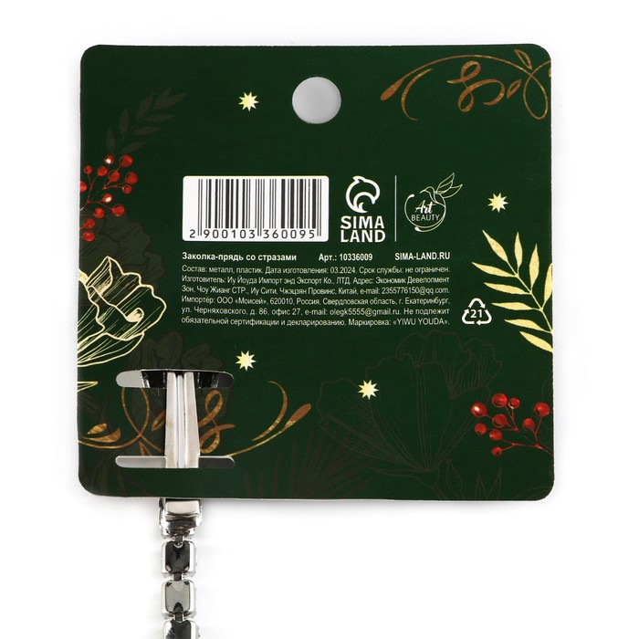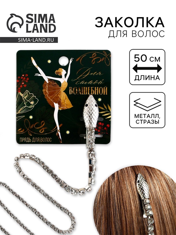 Заколка прядь со стразами новогодняя «Для самой волшебной», 1.5×1.5×2×45 см — Характеристики