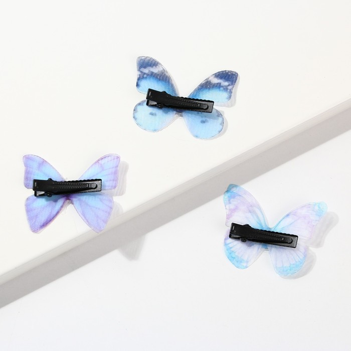 Предлагаем красивые оригинальные наборы заколок с бабочками.Такие нежные и невесомые. Они способны оживить и преобразить любую причёску. Заколки клик-клак для девочки можно использовать для яркой фотосессии, на утренник в детском саду, украшения волос на праздник, на прогулку в парке, просто без повода для поднятия настроения. В каждом наборе 3 бабочки различного дизайна. Бабочка с двойными крылышками выполнена из тонкого материала, при легком дуновении ветра она словно оживает и машет крылышками.Внешне заколка сразу привлекает внимание - очень красивая расцветка крыльев бабочки, и ничего лишнего - сам корпус, на которую крепятся крылышки, не заметен в прическе. Этим достигается эффект того, что бабочка как будто "сидит" в волосах, а не на заколке. Эти очаровательные бабочки украсят прическу как девушки, так и юной модницы и подойдут под любой наряд.