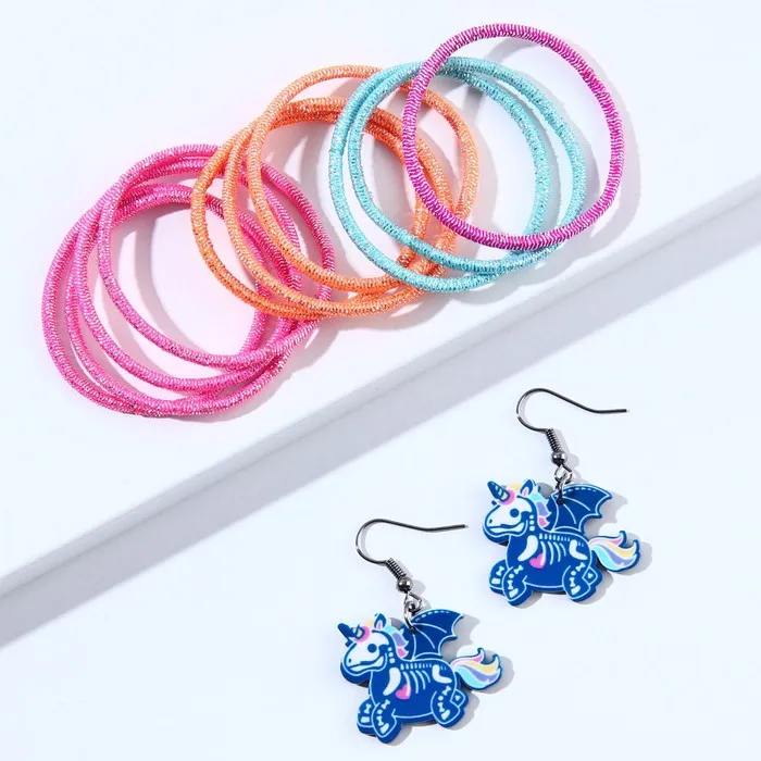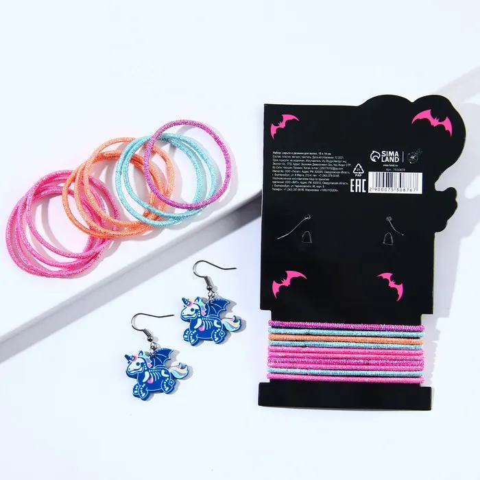 Набор резинок отлично украсит и надёжно зафиксирует любую прическу, а серьги, идущие в копмлекте, дополнят образ для хэллоуина или разнообразят повседневный. Набор подойдёт в качестве подарка дочке, внучке, сестре или подруге.