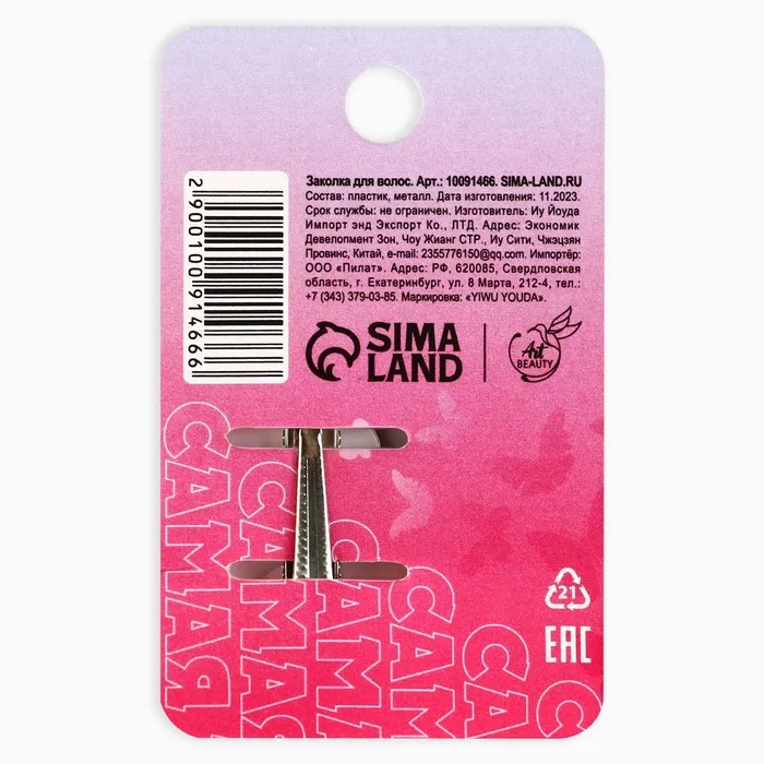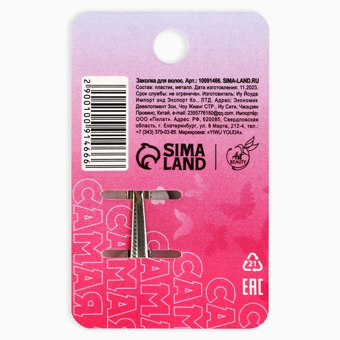 Заколки для волос на открытке «Самая милая», 2,7 х 3,7 х 1 см