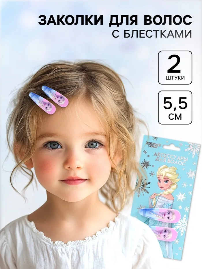 Заколки для волос, набор 2 шт., 5.5 см, «Холодное сердце» — Характеристики