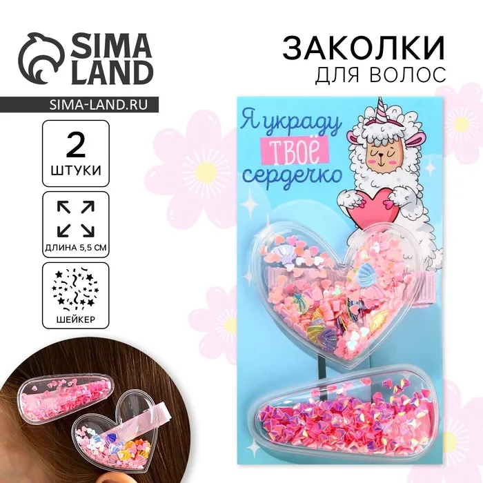 Заколки для волос «Украду твое сердечко», шейкер, 2 шт. — Характеристики