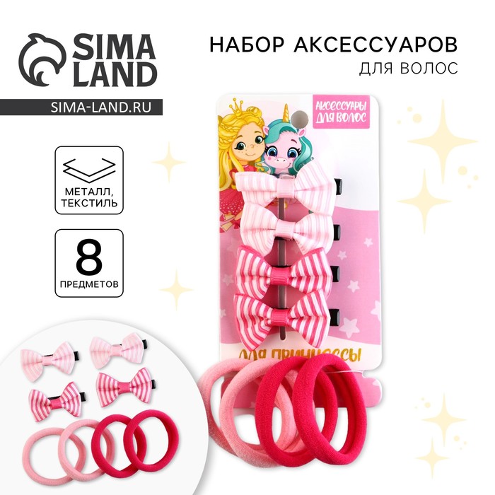 Заколки и резинки для волос «Для принцессы», (4 заколки,4 резинки) — Характеристики