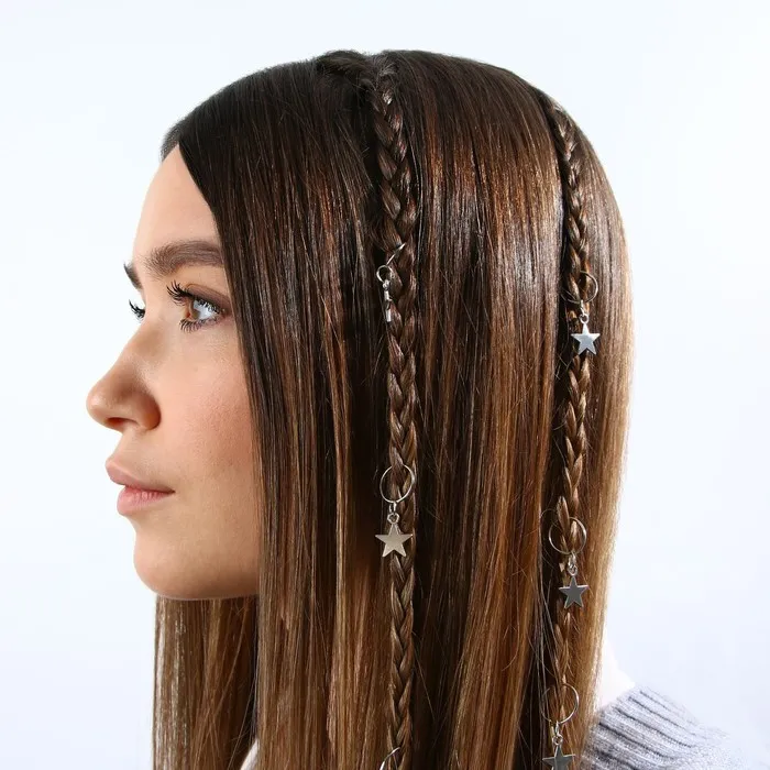 Кольца для волос или пирсинг для волос набирает популярность. Аксессуары для прически подойдут для создания стильных и необычных образов для любого мероприятия и на каждый день. Колечки, как аксессуары для волос, придадут прическе экстравагантный и утонченный стиль. В набор аксессуаров для волос входит 6 маленьких металлических колечек с декоративными подвесками и без. Украшения можно использовать для плетения косичек, афрокосичек или дредов. Кольца для волос раздвижные, выполнены из прочной гипоаллергенной стали под золото. Их легко надеть: раздвиньте, проденьте и сожмите вновь. Кольца для волос имеют оптимальный и самый популярный размер, диаметр 15 мм. Аксессуары подойдут для создания причёсок для маленьких девочек, подростков и девушек. Это отличный фальшпирсинг в афрокосы, зизи, трессы, брейды и на дреды! Клипса не слетает с плетения, как краб, клик клак, пряди на заколочках или зажимы в хвост. Колечки крепко держат искусственные косички для волос и надолго сохраняют причёску. Они для многоразового применения, в отличие от силиконовых резинок. Не ломаются, как детские заколки или бусины для локонов. Комплект подойдёт для свадебной укладки, на день рождения и на каждый день. Сделайте себе и близким приятный подарок!