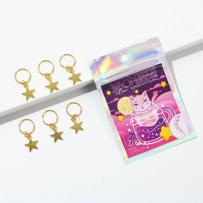 Кольца для волос или пирсинг для волос набирает популярность. Аксессуары для прически подойдут для создания стильных и необычных образов для любого мероприятия и на каждый день. Колечки, как аксессуары для волос, придадут прическе экстравагантный и утонченный стиль. В набор аксессуаров для волос входит 6 маленьких металлических колечек с декоративными подвесками и без. Украшения можно использовать для плетения косичек, афрокосичек или дредов. Кольца для волос раздвижные, выполнены из прочной гипоаллергенной стали под золото. Их легко надеть: раздвиньте, проденьте и сожмите вновь. Кольца для волос имеют оптимальный и самый популярный размер, диаметр 15 мм. Аксессуары подойдут для создания причёсок для маленьких девочек, подростков и девушек. Это отличный фальшпирсинг в афрокосы, зизи, трессы, брейды и на дреды! Клипса не слетает с плетения, как краб, клик клак, пряди на заколочках или зажимы в хвост. Колечки крепко держат искусственные косички для волос и надолго сохраняют причёску. Они для многоразового применения, в отличие от силиконовых резинок. Не ломаются, как детские заколки или бусины для локонов. Комплект подойдёт для свадебной укладки, на день рождения и на каждый день. Сделайте себе и близким приятный подарок!