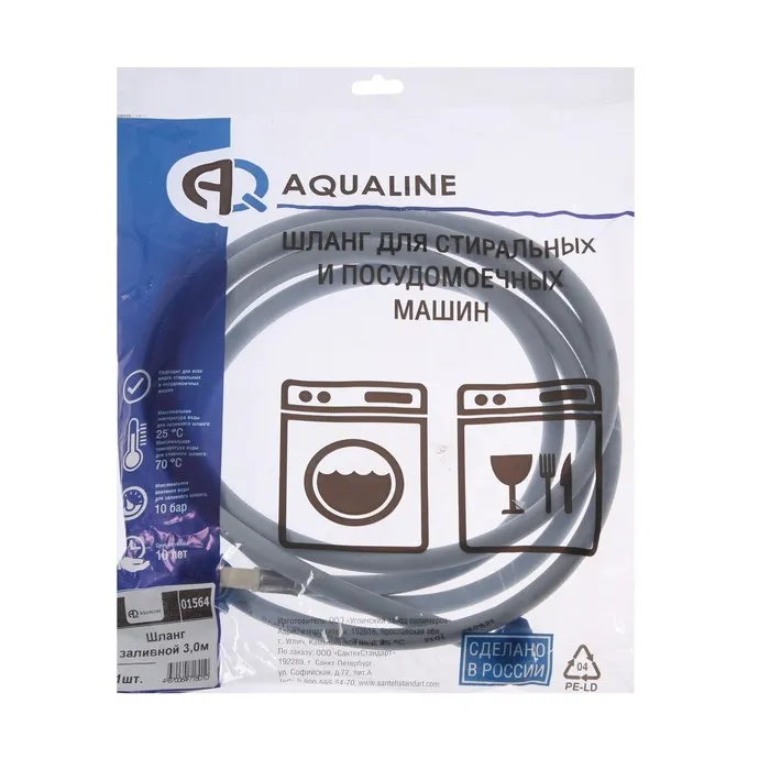 Заливной шланг для стиральной машины AQUALINE 1564, индивидуальная упаковка, 3 м — Характеристики