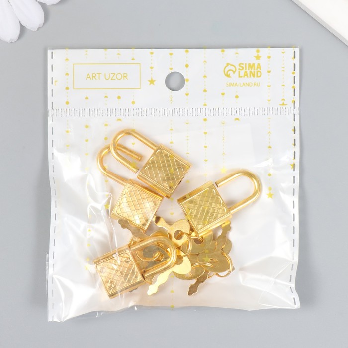 Замочек с ключиком для шкатулки, копилки, ключницы, металл, набор 5 шт., под золото, 3.1×1.7 см