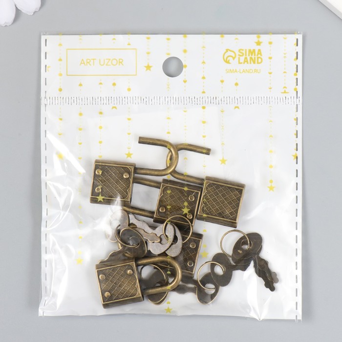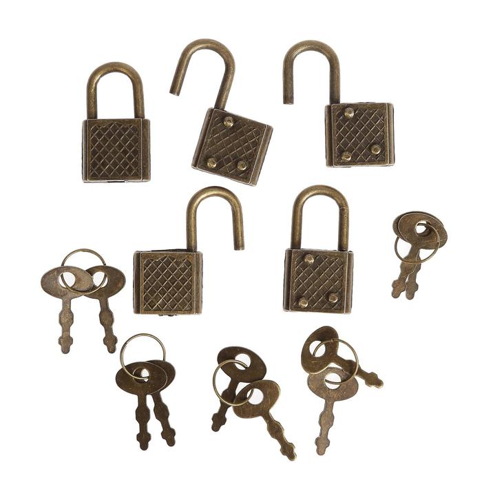 Замочек с ключиком для шкатулки металл набор 5 шт С286 бронза 3,1х1,7 см