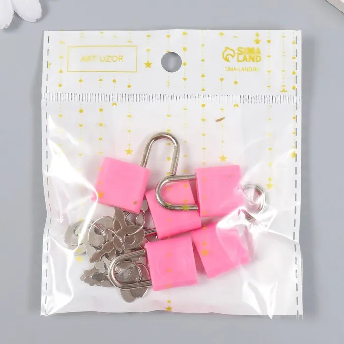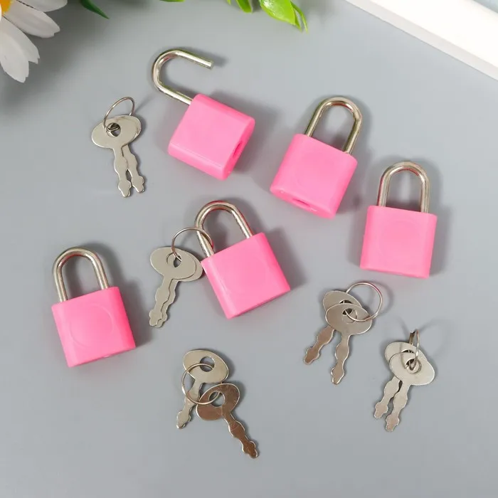 Замочек с ключиком для шкатулки металл, пластик набор 5 шт С286 3,1х1,9 см