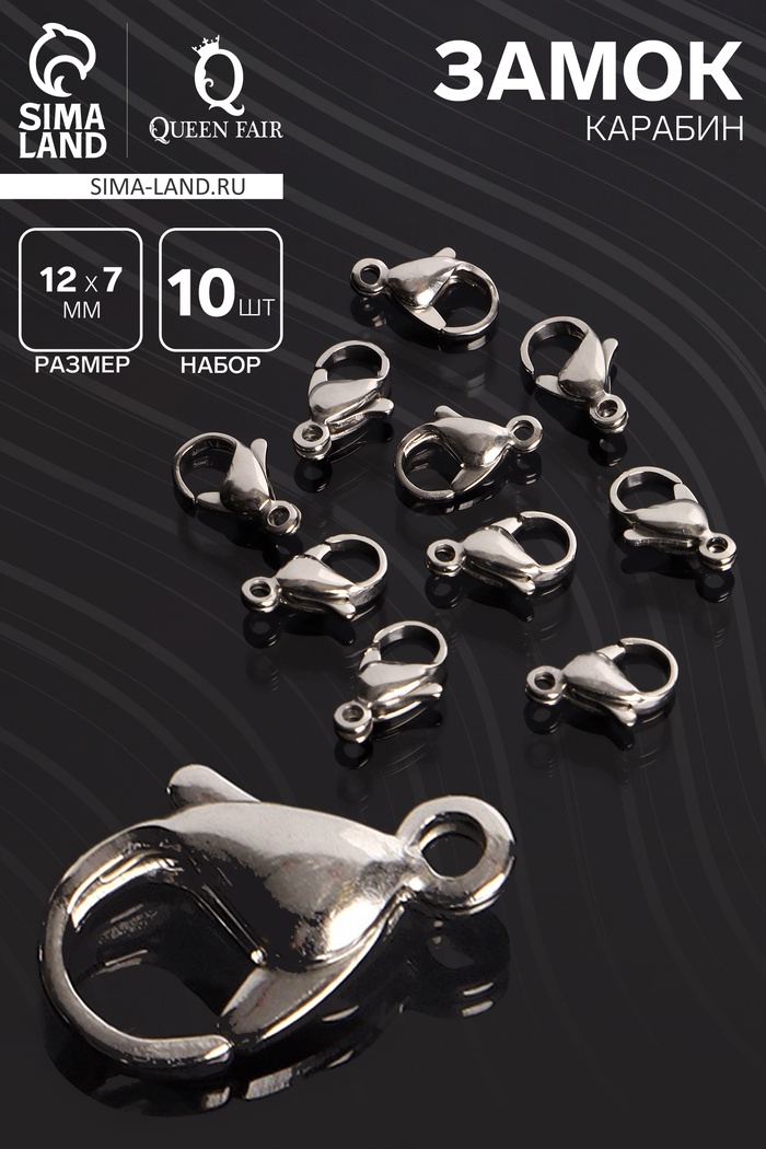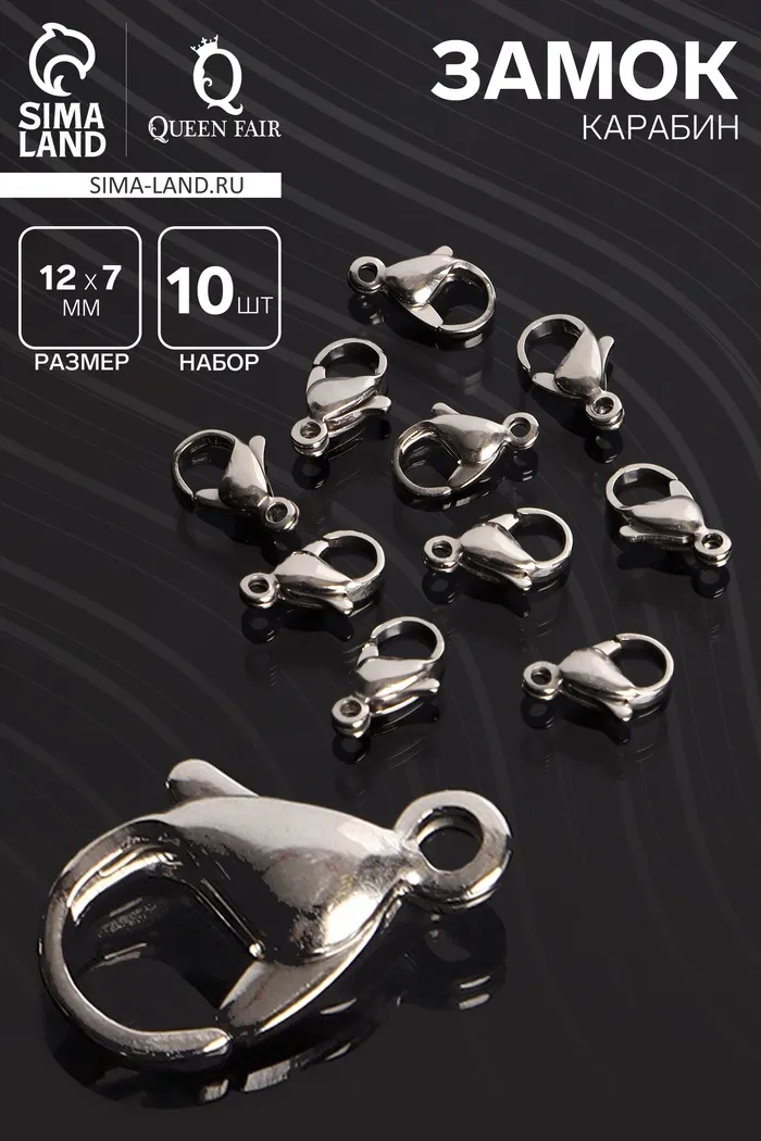 Замок карабин, 10 шт. 12×7 мм, цвет серебро — Характеристики