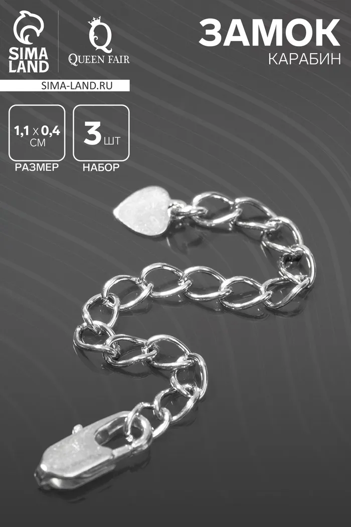 Замок-карабин (1.1×0.4 см) с удлинителем 5.8 см «Сердечко» малое (набор 3 шт.), цвет серебро — Характеристики