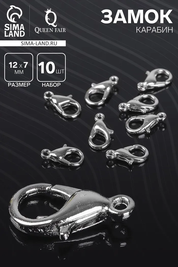 Замок-карабин (набор 10 шт.) — это надежный и практичный аксессуар для ваших украшений и рукодельных проектов. Размер каждого замка составляет 12 х 7 мм, а серебристый цвет придаёт изделиям элегантный и универсальный вид. Эти замки идеально подходят для использования в браслетах, ожерельях, ключницах и других аксессуарах.