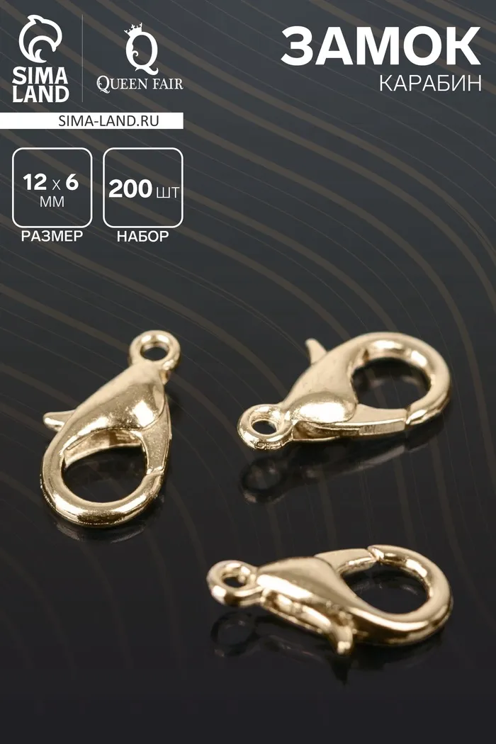 Замок-карабин, набор 200 шт. 12×6 мм, цвет золото — Характеристики