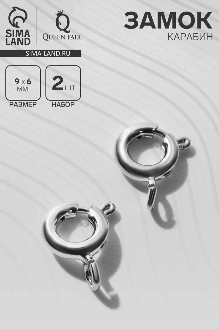 Замок - карабин посеребрение, (набор 2 шт.) 9×6 мм, кольцо — Характеристики