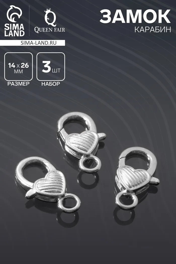 Замок-карабин «Сердечко» полосатое, (набор 3 шт.), 14×26 мм, цвет серебро — Характеристики