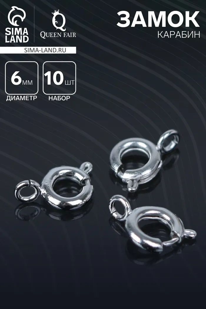 Замок-карабин СМ-554, (набор 10 шт.), d=6 мм, цвет серебро — Характеристики