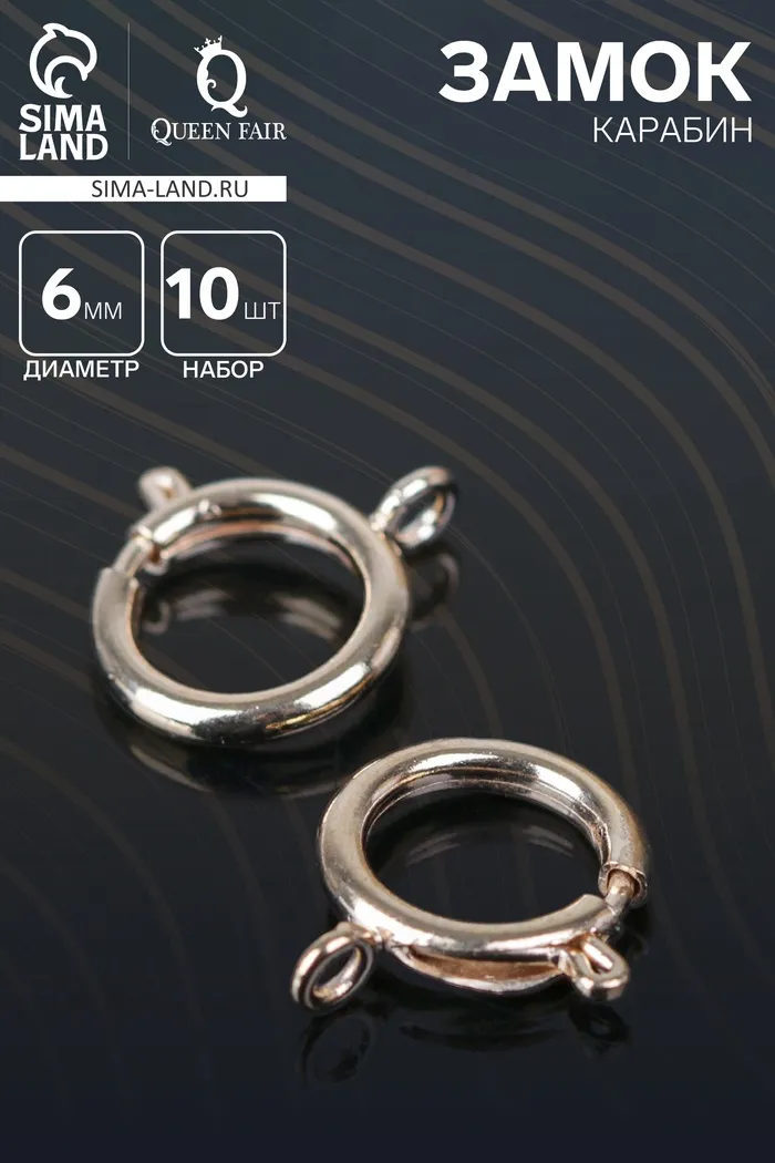 Замок-карабин СМ-554, (набор 10 шт.), d=6 мм, цвет золото — Характеристики