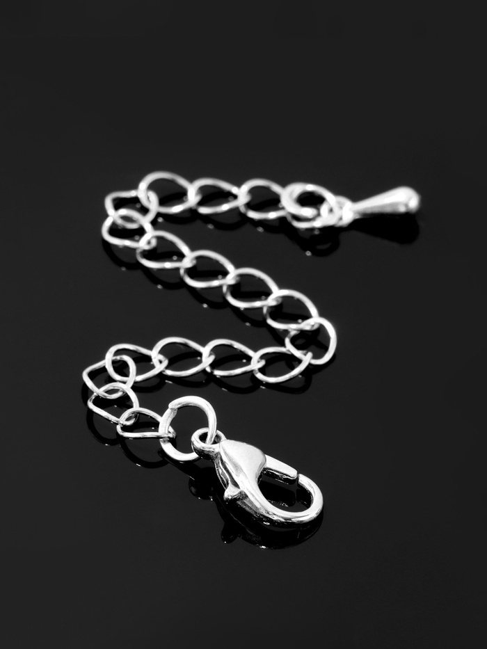 Удлинительная цепочка позволяет регулировать длину изделия, добавляя универсальности к браслетам, цепочкам и другим аксессуарам. Этот вид застежки популярен среди мастеров благодаря своей функциональности и долговечности.