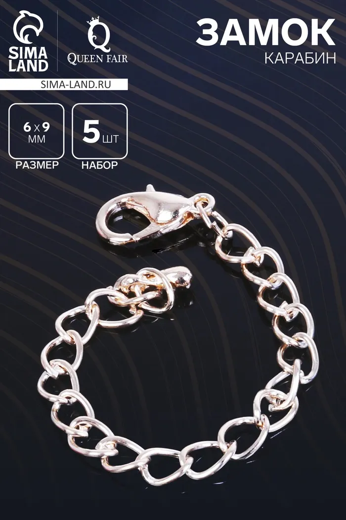 Замок-карабин СМ-951 (набор 5 шт.), 6×9 мм, с удлинительной цепочкой 8 см, цвет золото — Характеристики