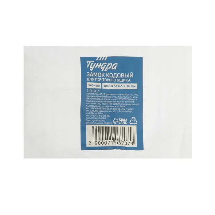 Замок кодовый ТУНДРА, для почтового ящика, цвет черный, длина резьбовой части 30 мм — Характеристики