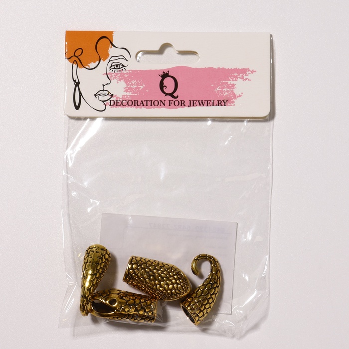 Замок-концевик «Змея», 4,3×1,6 мм (внутренний 0,7 мм),(набор 2 шт.) цвет чернёного серебра