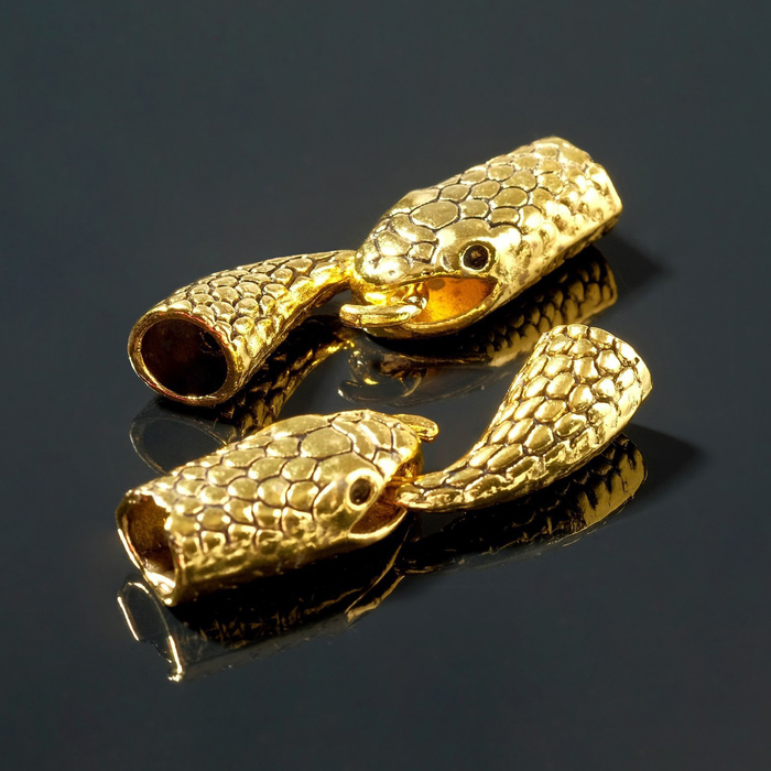 Замок-концевик «Змея» в цвете чернёного золота – это стильное и практичное дополнение для ваших изделий! Размер 4,3×1,6 мм (внутренний диаметр 0,7 мм) делает этот замок идеальным выбором для работы с нитями, шнурами и кожаными шнурами. Его уникальный дизайн в виде змеи придаст вашим украшениям или аксессуарам не только элегантность, но и утонченную изысканность. Замок-концевик «Змея» идеально подходит для создания браслетов, ожерелий и других украшений ручной работы, добавляя акцент и завершенность каждому изделию.