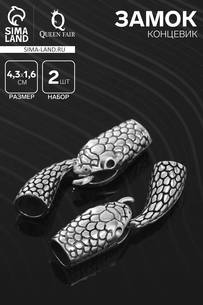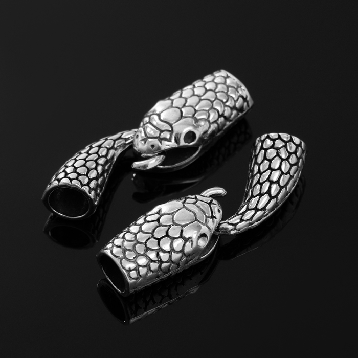 Замок-концевик «Змея» 4,3×1,6 мм (внутренний 0,7 мм) в цвете чернёного серебра — это элегантный и стильный элемент, который идеально подойдёт для финиширования цепочек и создания уникальных украшений. Изготовленный из высококачественного материала, замок имеет прочную конструкцию и надежно удерживает концы изделий.