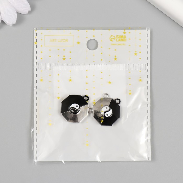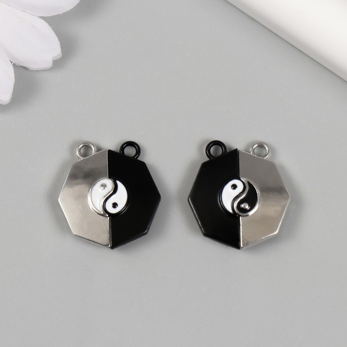 Замок магнитный металл «Инь-ян», чёрный и серебристый, 2×2.2×0.5 см, (набор 2 половинки)