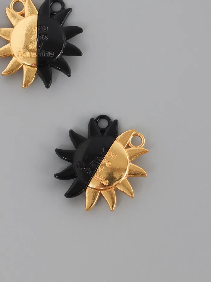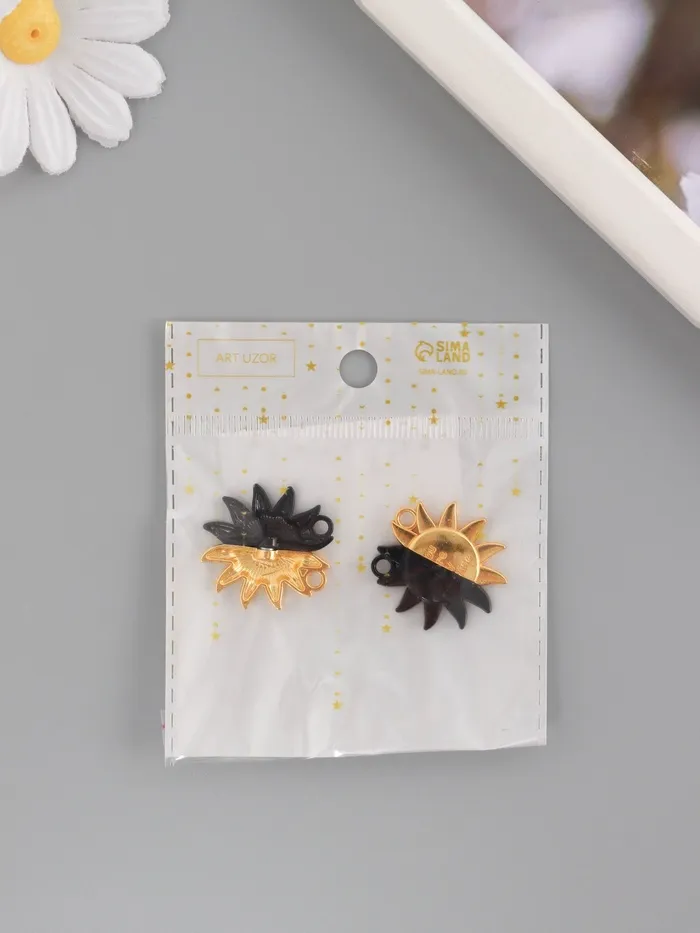 Замок магнитный металл «Солнце», набор 2 шт., чёрно-золотой, 2.7×2.6 см