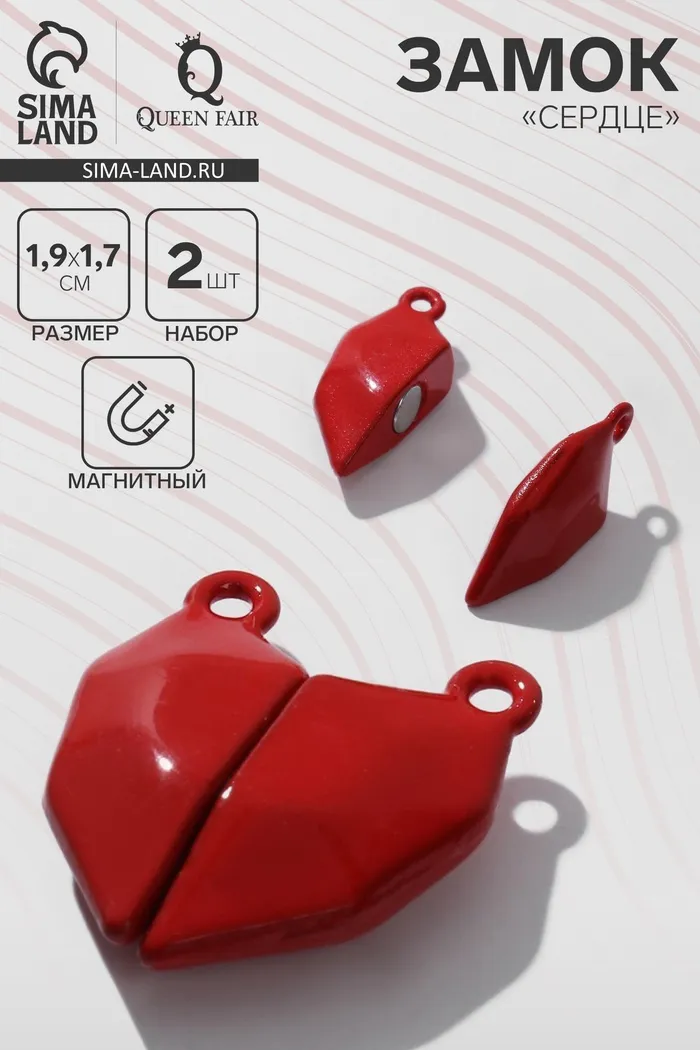 Замок магнитный «Сердце» геометрия (набор 2 шт.), цвет красный — Характеристики