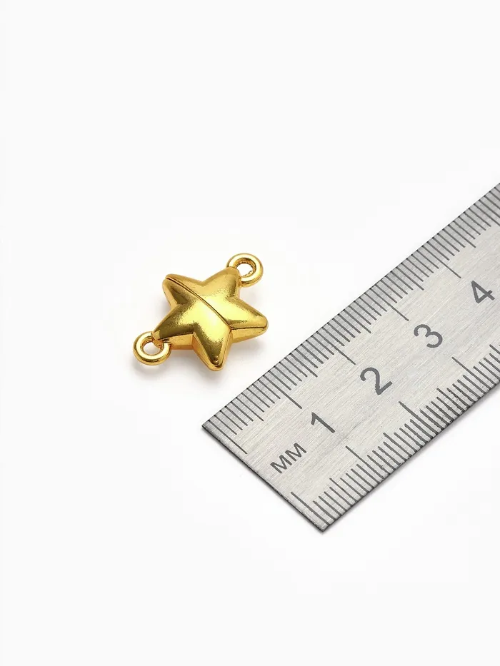Магнитные замки «Звезда» идеально подойдут для создания ожерелий, браслетов, а также других аксессуаров. Золотой цвет замков гармонично сочетается с различными материалами и оттенками, придавая украшениям завершённый и роскошный вид. Они идеально подходят для рукодельников, стремящихся добавить стильные акценты в свои творения.