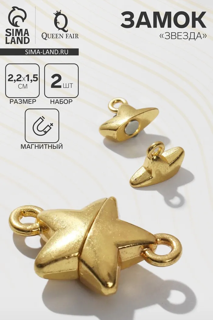Замок магнитный «Звезда» — это великолепное дополнение для ваших украшений. В наборе 2 замка золотого цвета, выполненные в виде стильных звёзд. Эти замки не только добавляют вашему изделию оригинальности и элегантности, но и обеспечивают удобство в использовании благодаря магнитной фиксации, которая легко открывается и закрывается.