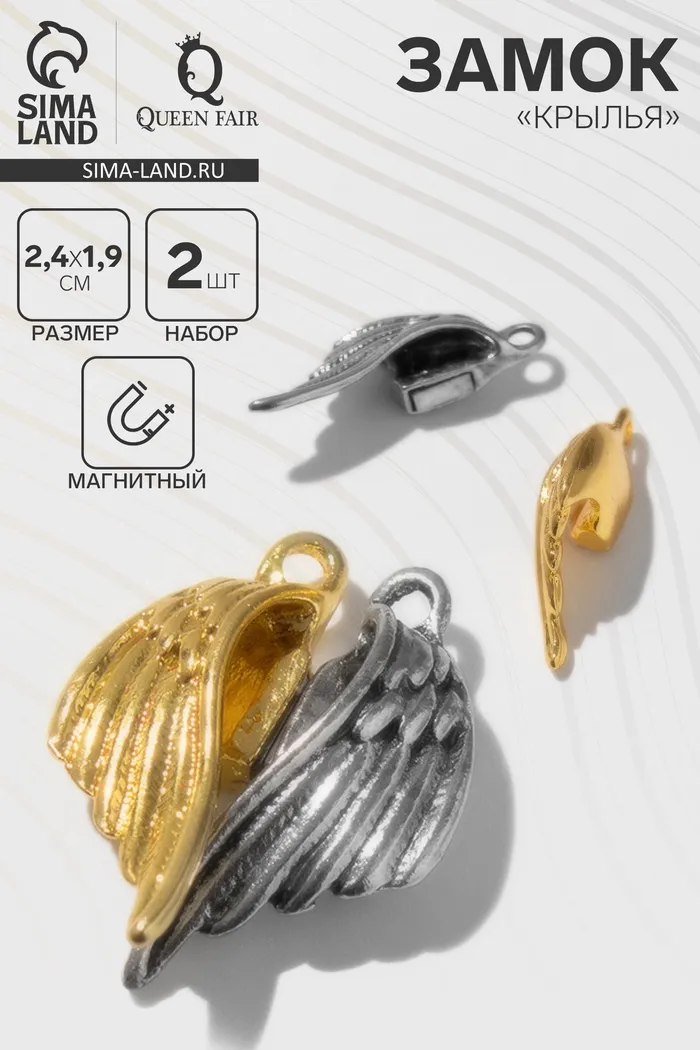 Замок магнитый «Крылья» (набор 2 шт.), цвет серебристо-золотой — Характеристики