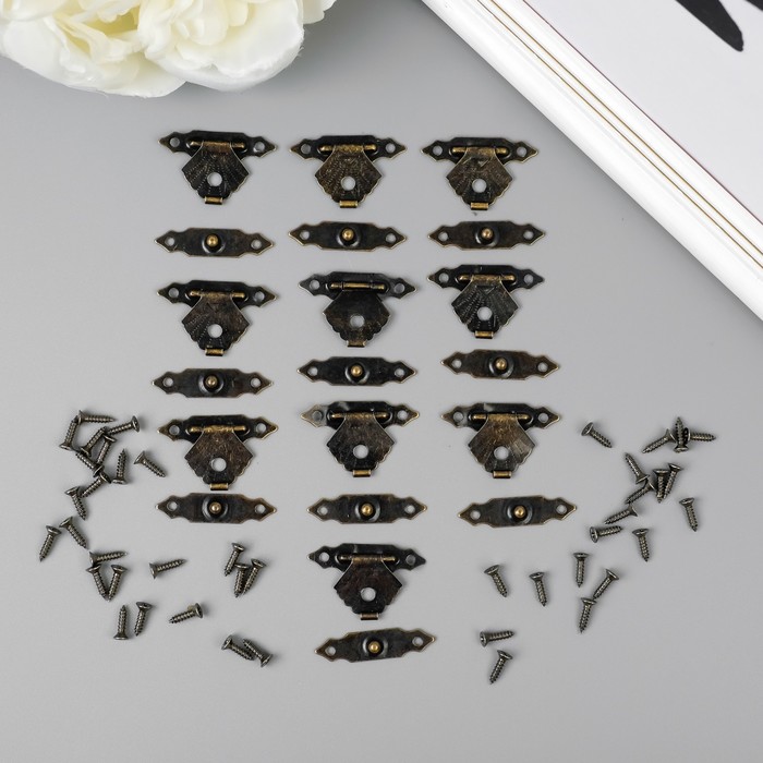 Замок металл для шкатулки бронза + гвозд. набор 10 шт 2х3 см