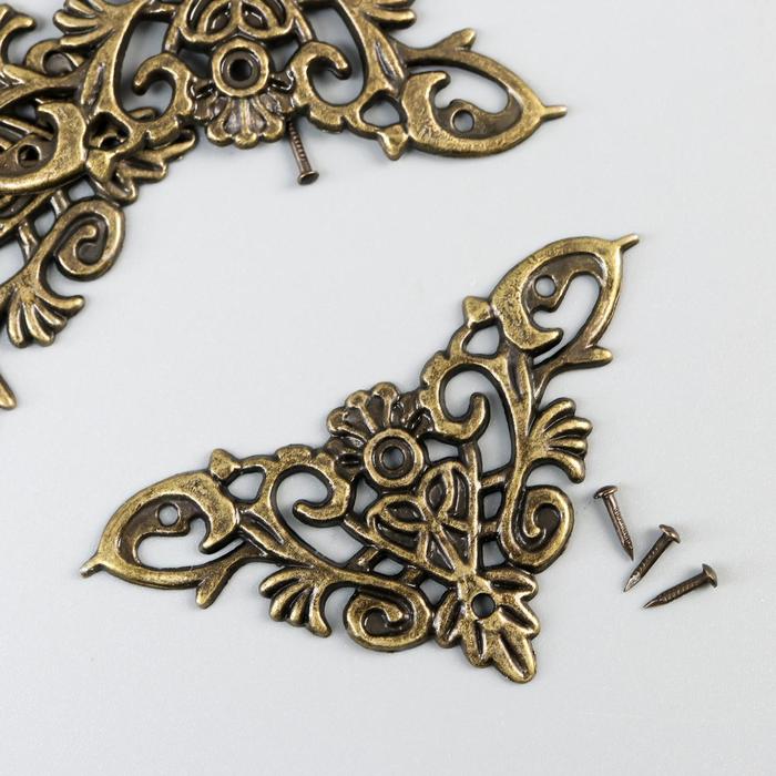 Уголок металл "Узорчатый" бронза набор 4 шт 4,5х4,5 см