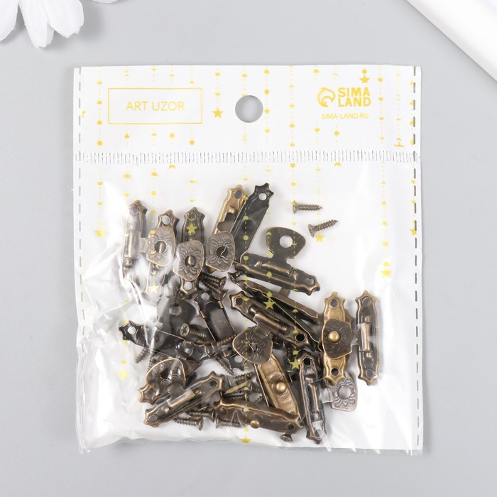 Замок металл для шкатулки бронза и крепёж, набор 10 шт., 1.5×2.7 см