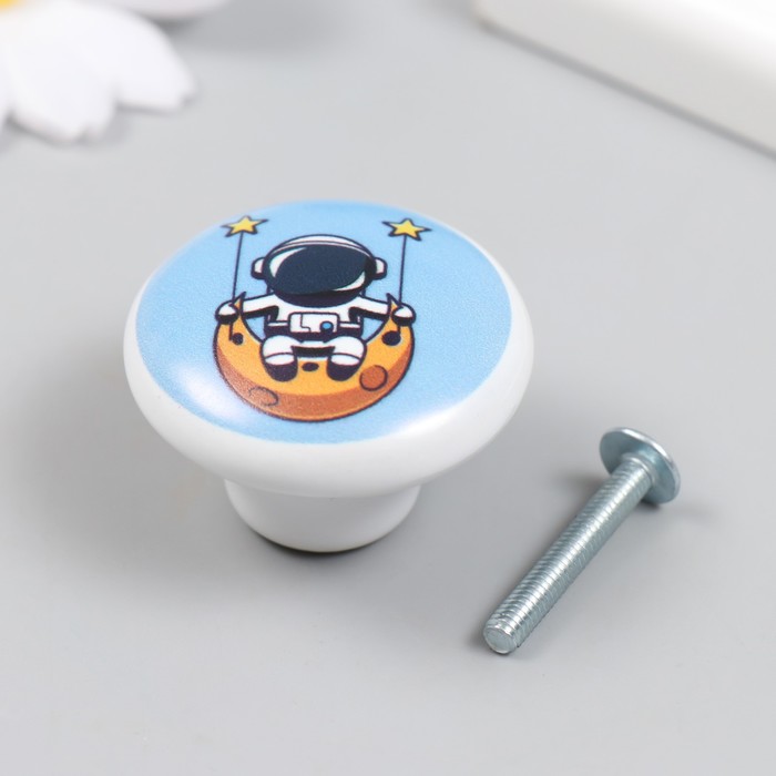 Фурнитура для шкатулки, ручка «Космонавт на качелях», керамика, металл, 3.8×3.8 см