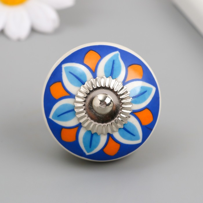 Ручка для шкатулки керамика, металл "Цветок сине-оранжевый" 4,1х4,1х6 см