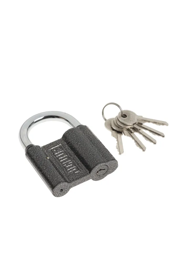 Надёжный металлический замок с защёлкивающейся дужкой предназначен для хозяйственных построек, гаражей и складов.