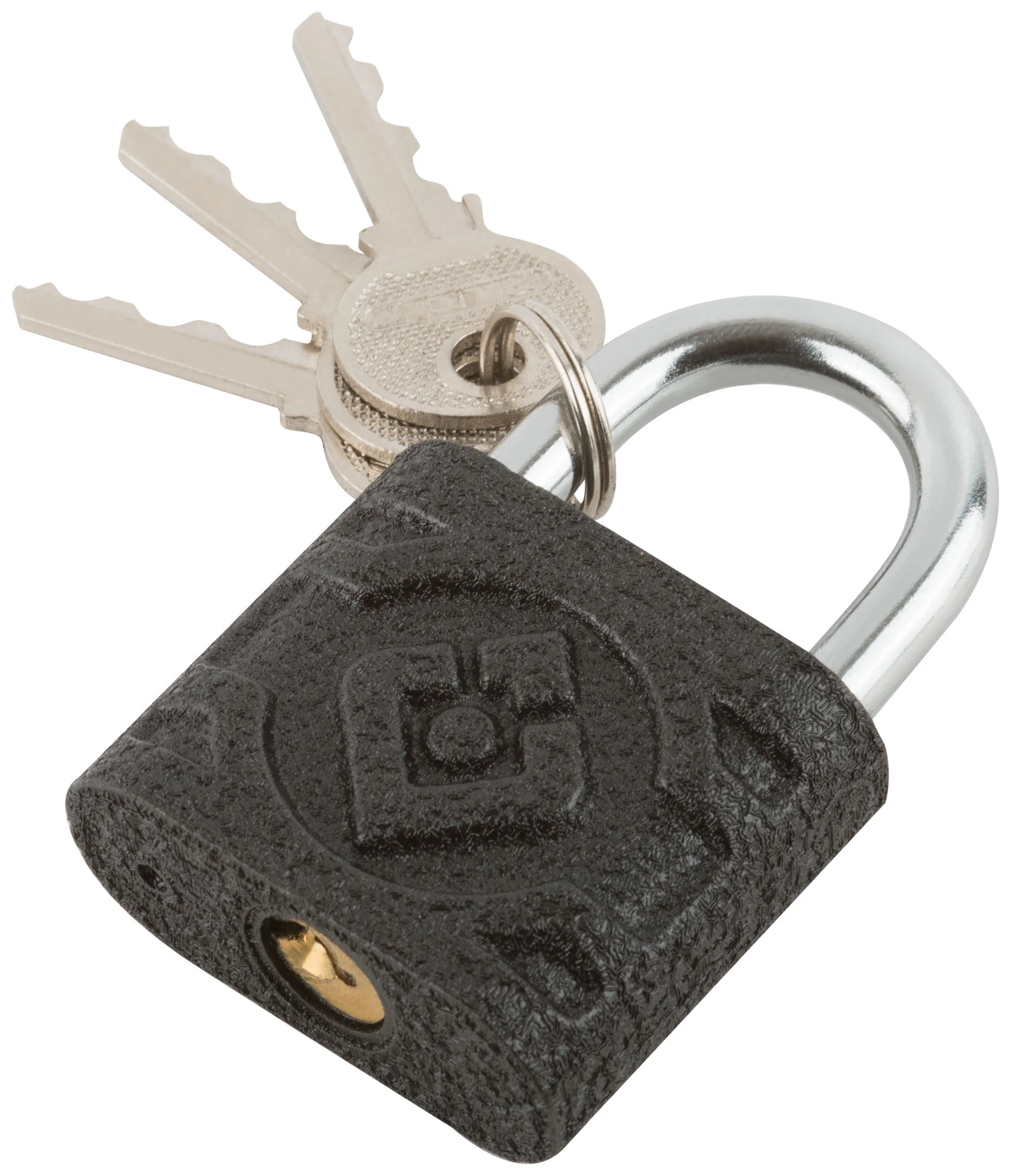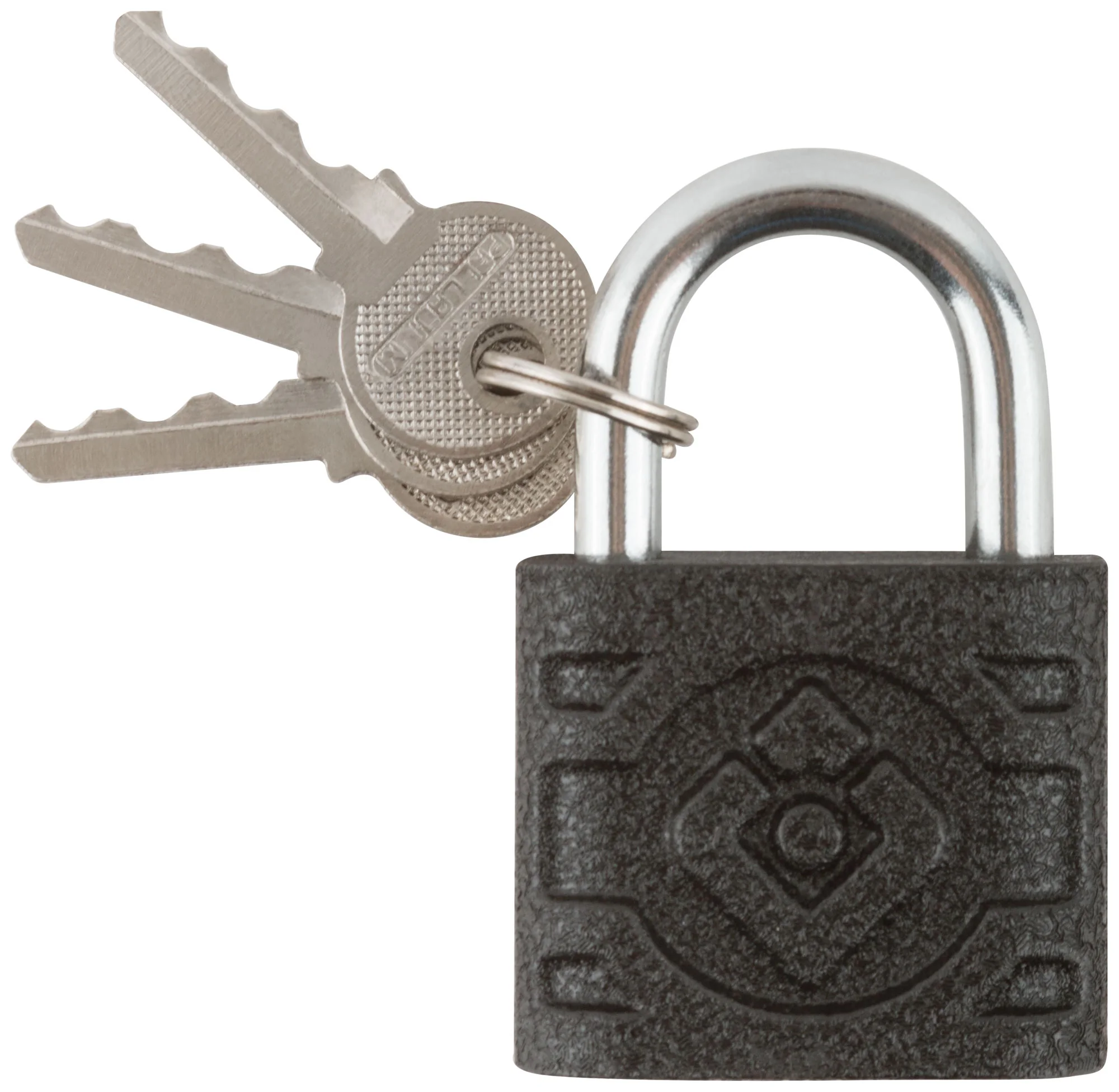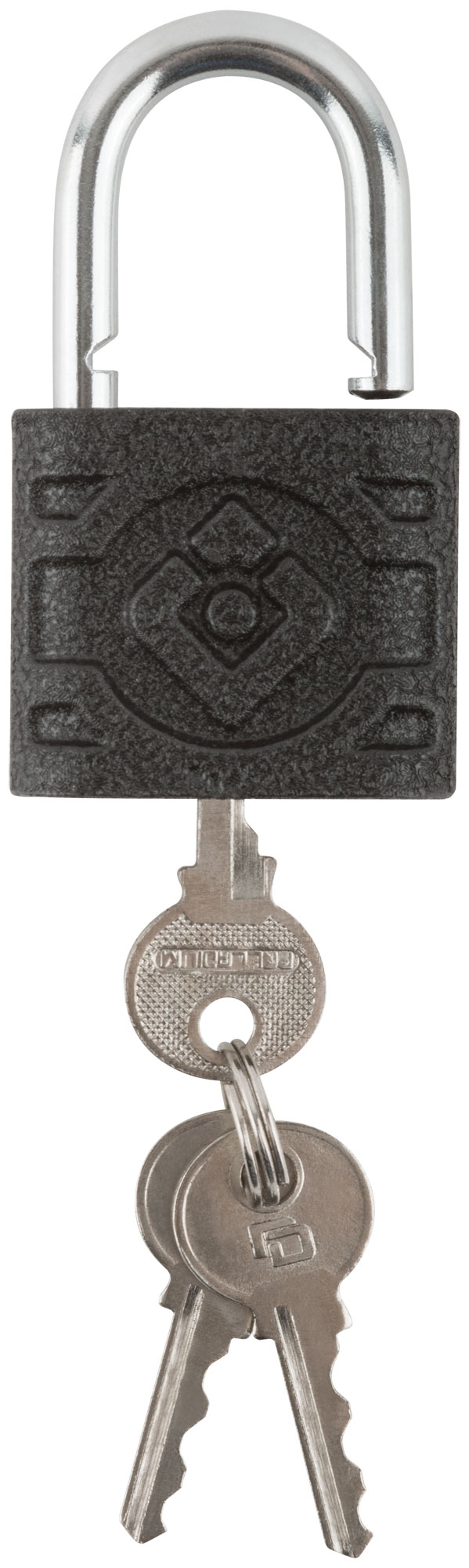 Корпус замка выполнен из чугуна, что делает его устойчивым к коррозии и механическим повреждениям. Дужка из инструментальной стали закалена для повышения прочности, а автоматическое запирание упрощает использование.