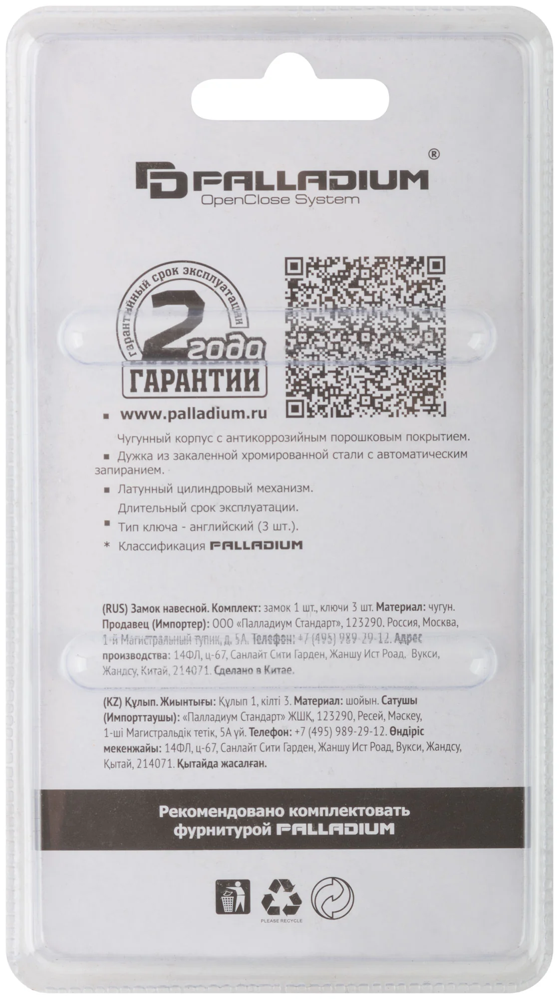 Замок навесной Palladium идеально подходит для защиты складских помещений, гаражей и хозяйственных построек. Надёжный чугунный корпус и стальная дужка обеспечивают высокий уровень безопасности, предотвращая несанкционированный доступ.